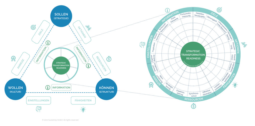 Ein wichtiger Erfolgsfaktor für die strategische Nachhaltigkeitstransformation ist ein „fit“ von Strategie, Struktur und Kultur. Zur Schaffung einer strategiefokussierten Organisation mit „Purpose“ sind strategische Ziele entscheidungsrelevant in die Führungs- und Steuerungssysteme integriert. So werden Ressourcen, Fähigkeiten, Einstellungen, Anreize und Managementinformationen auf die Strategie ausgerichtet. Damit diejenigen Aktionen mit dem größten Beitrag zu wirtschaftlichen, sozialen und ökologischen Zielen auch die zur Umsetzung notwendigen finanziellen und zeitlichen Ressourcen bekommen.