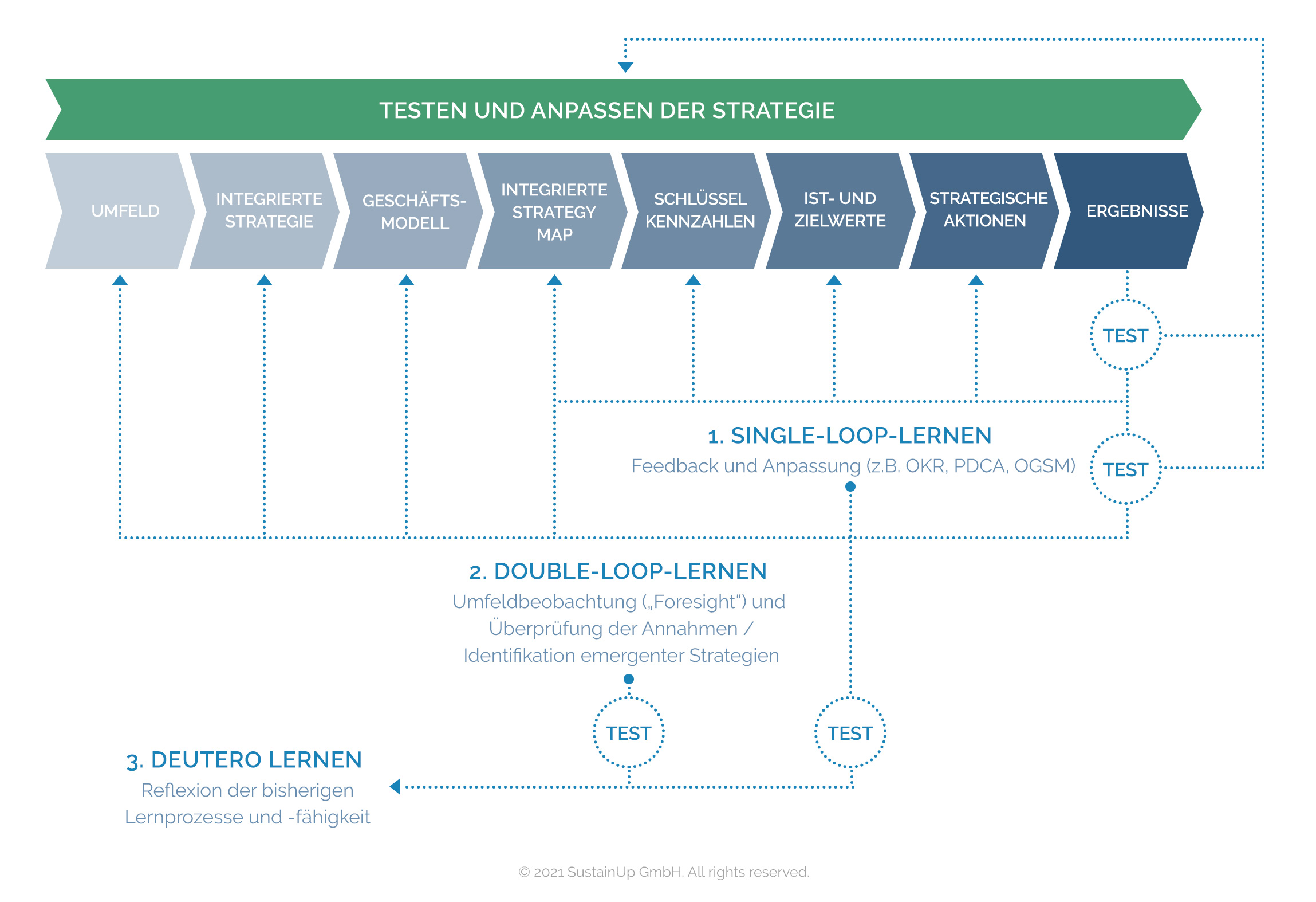 Denn was gemessen wird, bekommt Aufmerksamkeit. Und was Aufmerksamkeit bekommt, wird auch umgesetzt. Jeder weiß, was genau erreicht werden soll, wie sehr man sich dafür anstrengen muss, und ob die durchgeführten Projekte auch „wirken“. Eingebettet in zeitgemäße Review- und Anpassungsprozesse, beispielsweise im Rahmen eines Objectives-Key-Results (OKR) Managementsystems, eines klassischen PDCA-Zyklus oder der OGSM-Methode, schafft man damit vielfältige Lernprozesse, die für die strategische Weiterentwicklung und Anpassungsbereitschaft des Unternehmens erfolgskritisch sind.