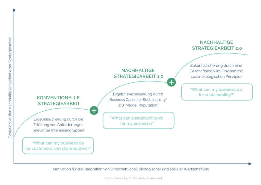Mit SustainUp adressieren wir die Möglichkeiten der Wirtschaft, einen wesentlichen Beitrag für die ökologische, soziale und wirtschaftliche Transformation zu leisten. Frei nach Erich Kästner möchten wir nun im unmittelbaren Unternehmensumfeld bei der nachhaltigen Entwicklung unterstützen.